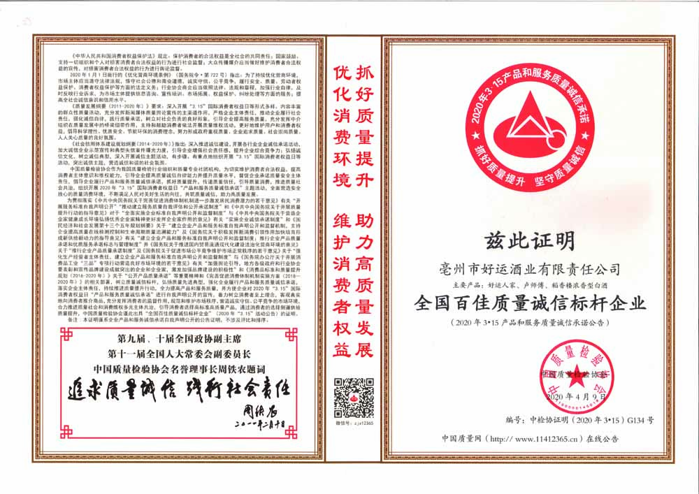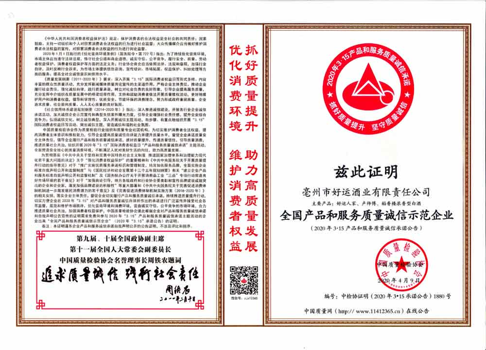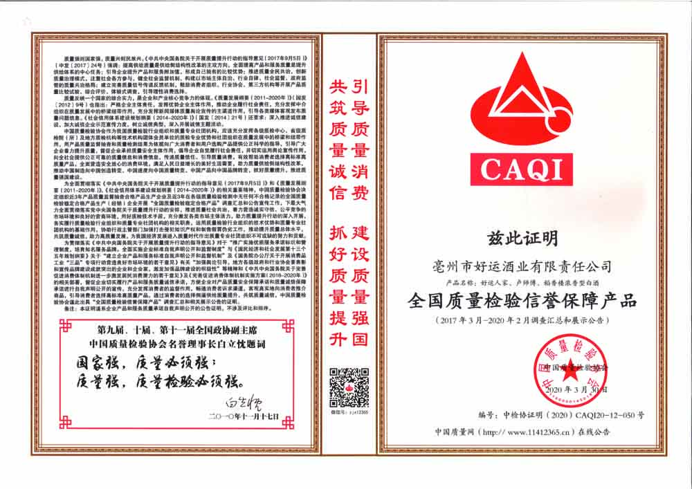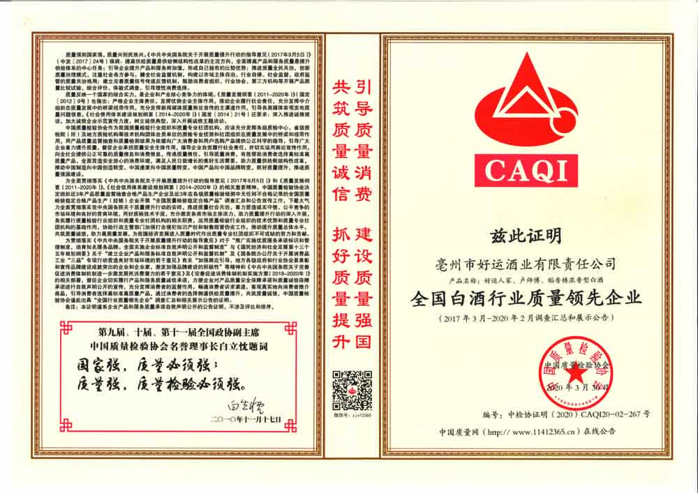全國(guó)白酒行業(yè)質(zhì)量領(lǐng)先品牌